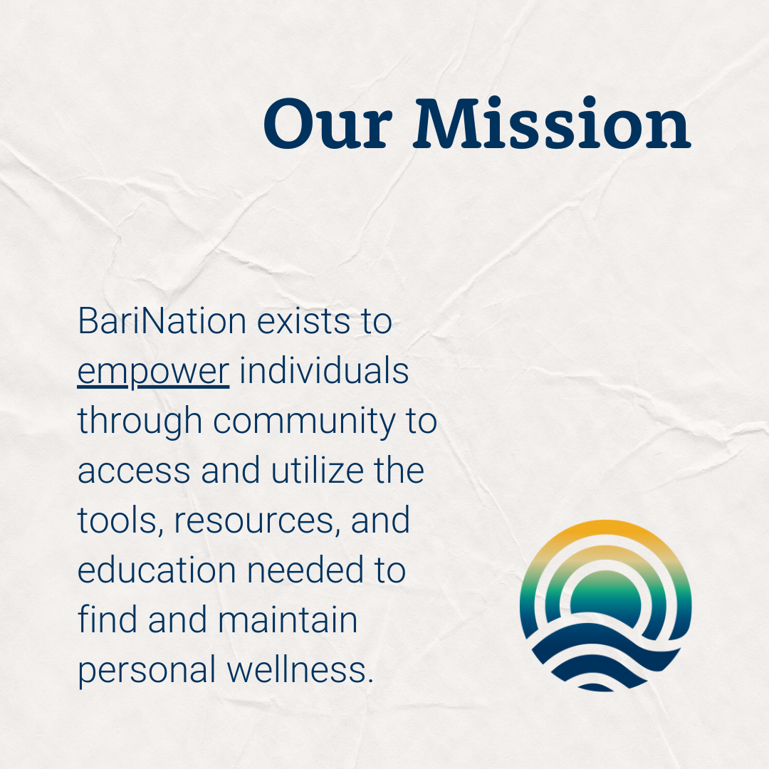 We are on a mission to empower individuals through community to access and utilize the tools, resources, and education needed to find personal wellness. In BariNation, individuals and members come together to learn new things, share experiences, and inspire one another to reach new heights. As patients, we are experts in our own lived experiences. But we might not be an expert in nutrition or movement. That’s why we partner with leading professionals from the bariatric spaces to create and deliver expert support and education when and where you need it.