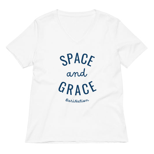 Women’s Space and Grace Relaxed V-Neck T-Shirt (Navy Lettering)