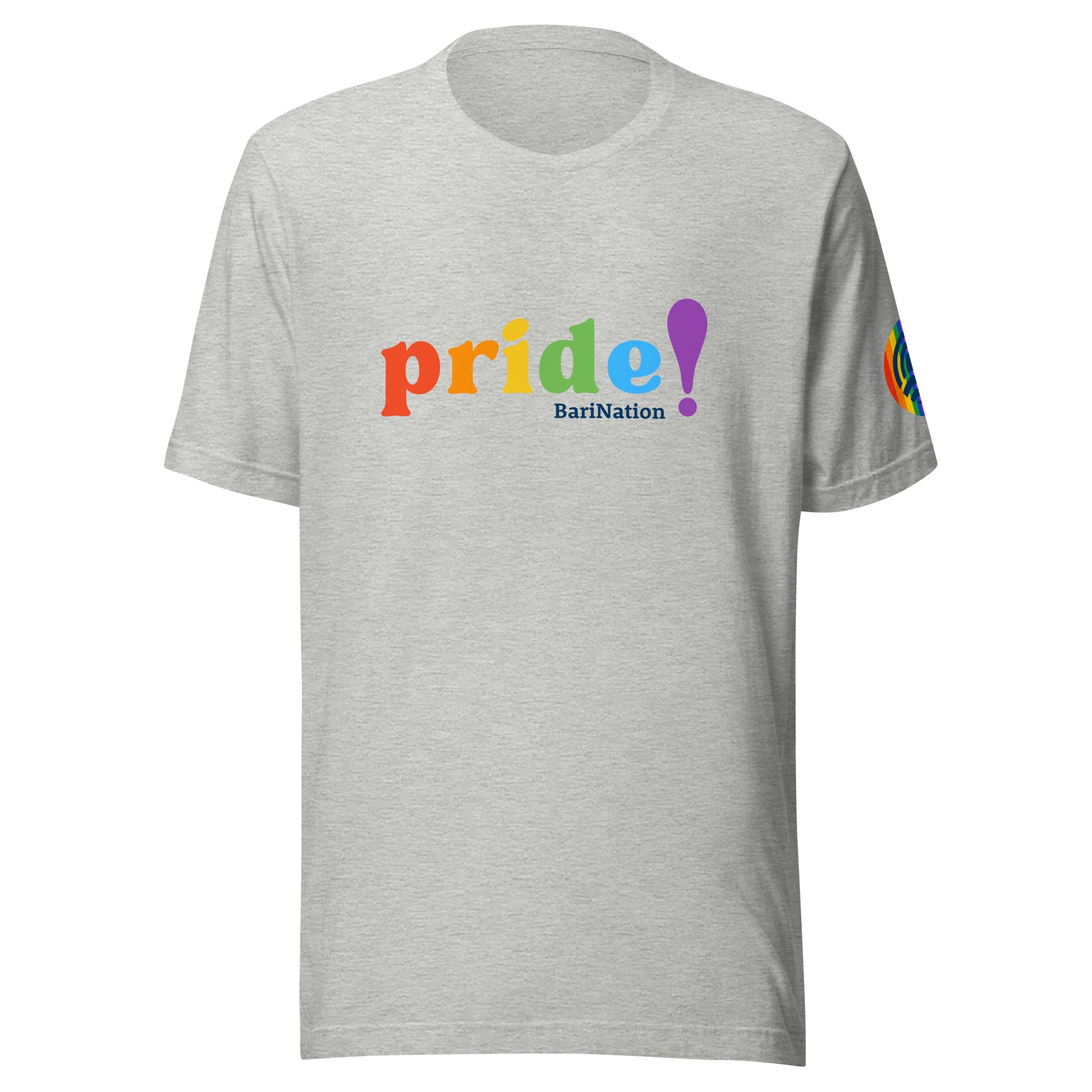 If you are a proud ally of an LGBTQIA+ human, a proud friend, or identify as an LGBTQIA+ member, this shirt is designed to be inclusive! This shirt features the Proud letting, with BariNation below in cursive.